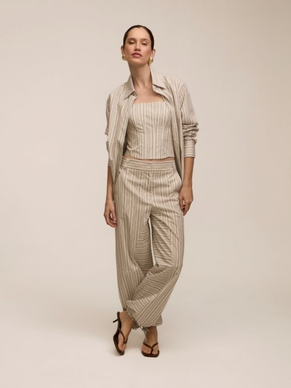 A alfaiataria, carro-chefe da marca, continua sendo desenvolvida com rigor técnico e identidade própria: fios tingidos em cores exclusivas, padronagens autorais, aviamentos personalizados e modelagens que equilibram conforto e precisão. Malhas estruturadas, crepes fluidos e jeans com construção de alfaiataria reforçam a mistura entre o despretensioso e o sofisticado, assinatura que consolidou a marca nesses quatro anos.