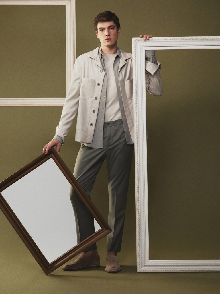 Para complementar as composições, os calçados Ricardo Almeida reforçam o olhar contemporâneo da linha. O mocassim, o modelo oxford e o tênis floater com cadarços elásticos se unem de forma harmônica à praticidade e versatilidade das peças.