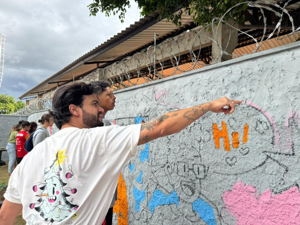 Arte que transforma: jovens do Tecendo o Futuro pintam mural coletivo ao lado de artista goiano