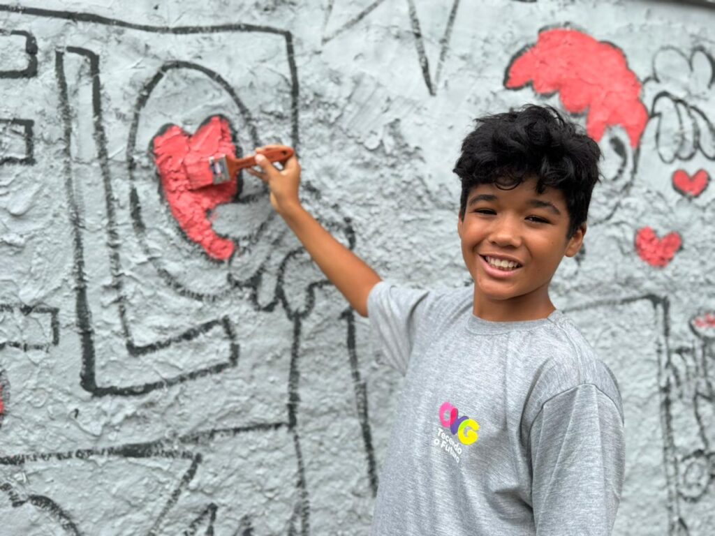 A ação também foi uma oportunidade para que os jovens aprendessem técnicas de desenho e pintura. Ly Hernandes Mourão, de 12 anos, descobriu detalhes que jamais havia percebido nos pincéis. “Achei uma experiência muito boa. A gente aprende sobre arte, sobre como desenhar e pintar melhor. Eu, por exemplo, não sabia que passar o pincel pra cima e pra baixo deixava a pintura mais bonita. Foi ótimo participar e ver que eu consigo fazer parte de algo tão grande”, disse o adolescente, com orgulho estampado no sorriso.