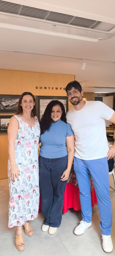 Franqueados da Bontempo Goiânia, João Nelson de Azevedo Júnior e Lívia Azevedo, e o designer Genésio Maranhão