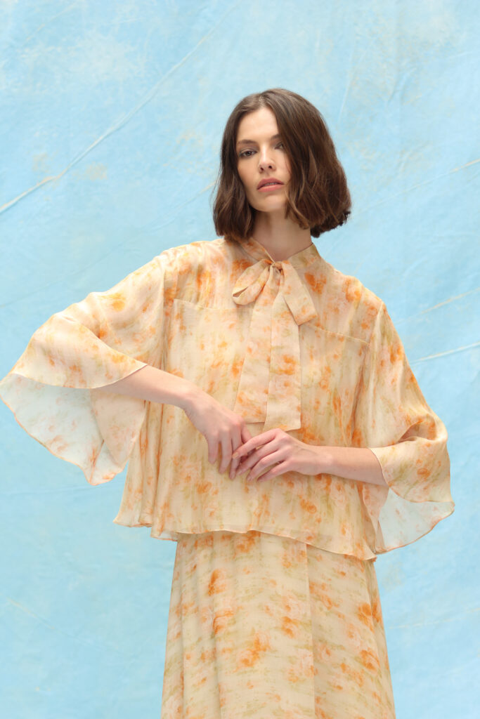 O utilitarismo elegante também encontra espaço em peças-chave como o conjunto all jeans Amara e a Parka Willow, que percorre diferentes propostas da coleção e reafirma a funcionalidade como expressão de estilo. Já para equilibrar a densidade dos tecidos invernais, a Família Frésia introduz leveza e feminilidade por meio de uma estampa floral exclusiva aplicada sobre voil de modal com seda.