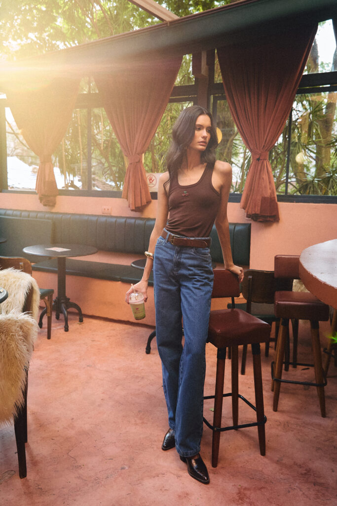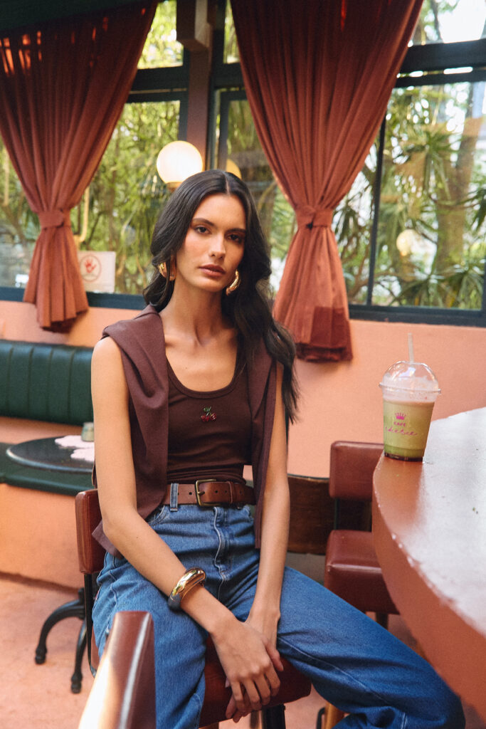 A Calça e o Corset Catarina são produzidos em um sofisticado tecido rendado com forro plano, adicionando um toque de exclusividade e feminilidade às peças. Já a Calça Jeans e a Camisa Dora, com a mesma lavagem e modelagem reta e atemporal, unem conforto, durabilidade e estilo – com destaque para o bordado exclusivo de cereja, ícone da coleção que transforma o jeans em um item exclusivo.