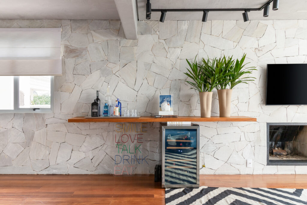 Em uma área super otimizada, deixamos de fácil acesso as bebidas destiladas tanto para o momento de servir a si e aos convidados. O momento especial é aquele que decidimos tornar”, reflete Daniela.