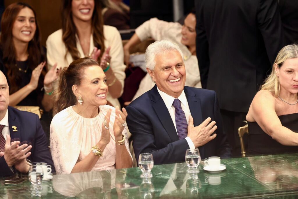 A sessão foi conduzida pelo presidente da Alego, deputado estadual Bruno Peixoto. Durante o evento, ele reconheceu o trabalho de Caiado e destacou algumas áreas. “Número 1 em segurança pública no país, número 1 no Ideb. A saúde descentralizada, equilíbrio financeiro, dinheiro em conta. Quando o nosso governador assumiu, não tínhamos condições de pagar a folha. O governador hoje entrega com salário pago em dia. Com dinheiro em caixa. Isso é equilíbrio fiscal. Então, quero agradecer, em nome dos deputados e deputadas, em nome do povo goiano”, disse.
