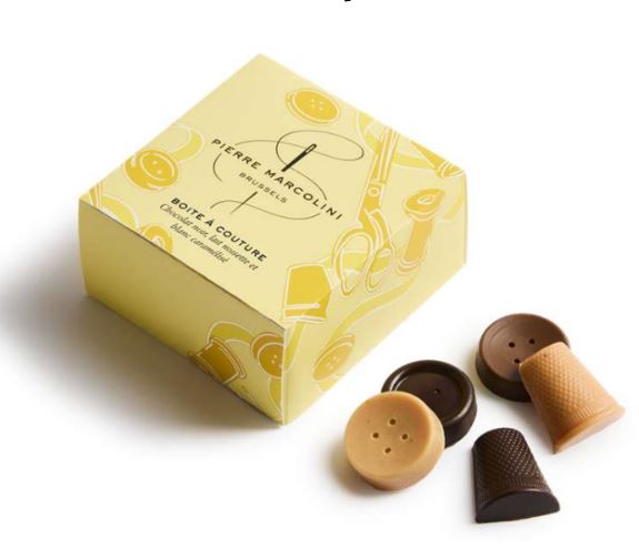 Alain Ducasse, por sua vez, opta por uma abordagem mais gráfica com a Tablette Poussin: uma barra de chocolate amargo decorada com pintinhos e recheada com pralinê de amêndoa e avelã, além de fragmentos de amendoim e caramelo, pontuados por uma discreta nota salgada.