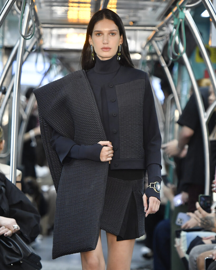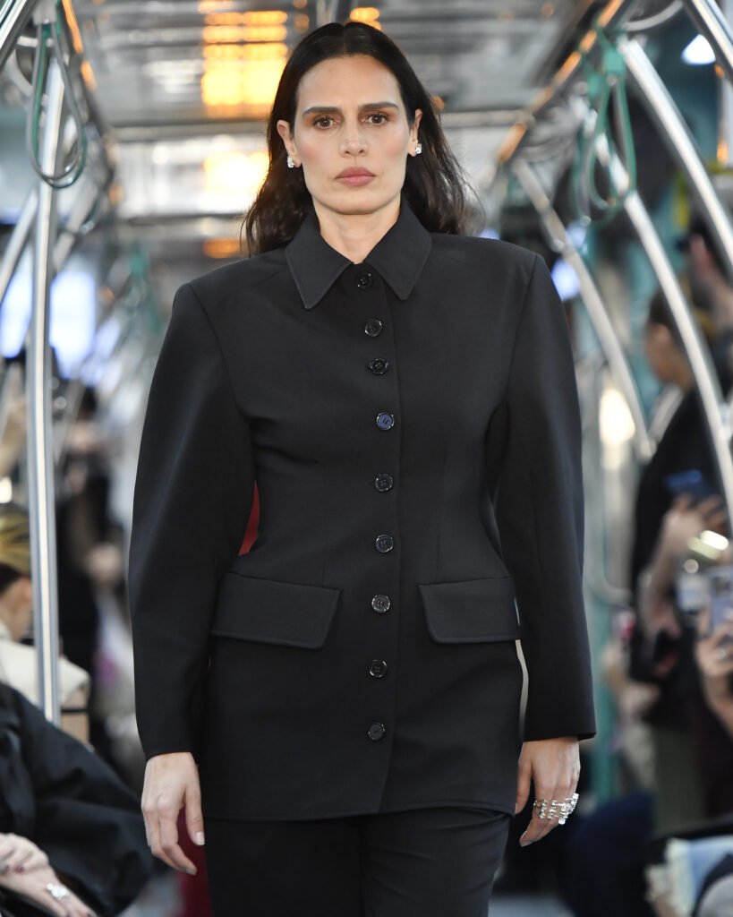 Por sua vez, o cenário, um vagão do Metrô adaptado para a apresentação, foi transformado em um espaço de imersão estética e simbólica. Dessa forma, com as modelos desfilando entre os corredores, o trem em movimento materializou o conceito central da coleção: o tempo como vetor de transformação.