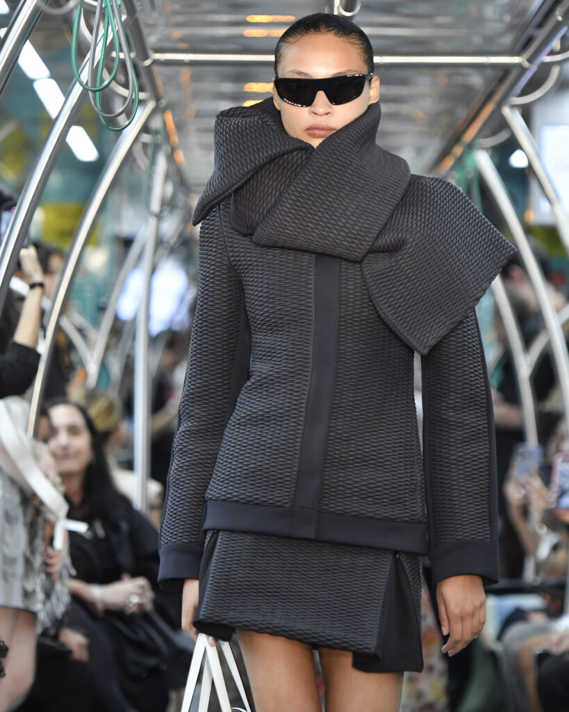 Os looks, por sua vez, revelaram o equilíbrio entre a engenharia de formas minimalistas e a delicadeza artesanal. Além disso, vestidos etéreos cobertos por flores aplicadas de tule e cetim contrastaram com jaquetas arquitetônicas e conjuntos em couro estruturado. Por fim, a trilha sonora assinada por Luiz Coppola reforçou o tom cinematográfico da experiência.