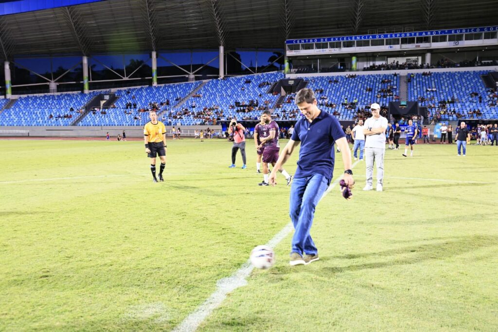 O fortalecimento do esporte e da cultura em Goiás, com a ampliação de oportunidades por meio de editais e de políticas públicas de fomento, foi destacado pelo vice-governador Daniel Vilela neste domingo (11/1), durante o Futebol Solidário 2026, realizado no Estádio Olímpico, em Goiânia. O evento reuniu artistas, atletas e autoridades em uma grande ação com foco na solidariedade.