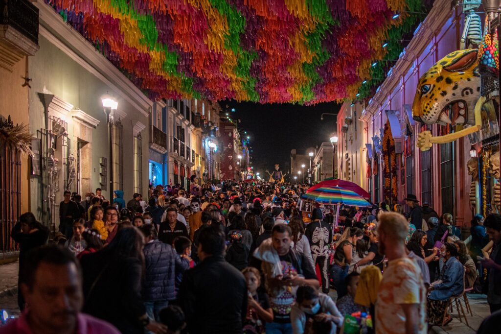 A riqueza de cores, crenças e rituais da festividade mexicana atrai viajantes para experiências em destinos como Oaxaca. A cidade se transforma nesta época, e o tour noturno do Día de Muertos por Oaxaca encanta visitantes. Ademais, os participantes conhecem altares decorados, panteões enfeitados, música, dança e gastronomia típica da região.