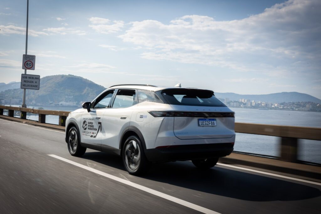 Em relação ao Omoda 7, o híbrido plug-in tem motor 1.5 TGDI e um conjunto elétrico que resulta em 279 cavalos de potência total. Faz 0 a 100 km/h em 8,4 s e entrega autonomia combinada de 1.200 km, com até 60 km apenas em modo elétrico, segundo medição do Inmetro. No interior, o destaque fica por conta da tela central flutuante de 15,6 polegadas, que pode deslizar do centro em direção ao passageiro, oferecendo uma experiência interativa e futurista.
