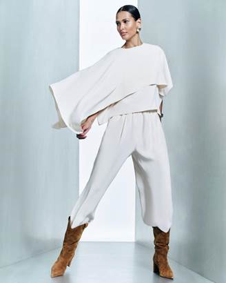 O resultado é uma alfaiataria que mantém sua precisão, mas se afasta de formalidades rígidas para assumir uma postura mais contemporânea, alinhada a uma mulher Le Lis, que busca elegância com liberdade de movimento.