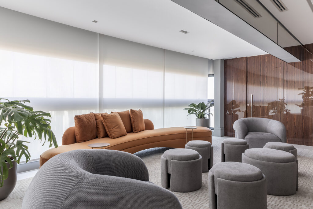 Sempre ancorada na harmonia dentro da paleta do projeto, a arquiteta Ana Rozenblit desmitifica o receio de investir em sofás que fujam dos tradicionais bege e off white